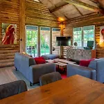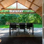 Spacious Wooden Chalet With Covered Terrace距离Landgoed Schaluinen大概有10分钟车程,俯瞰花园。